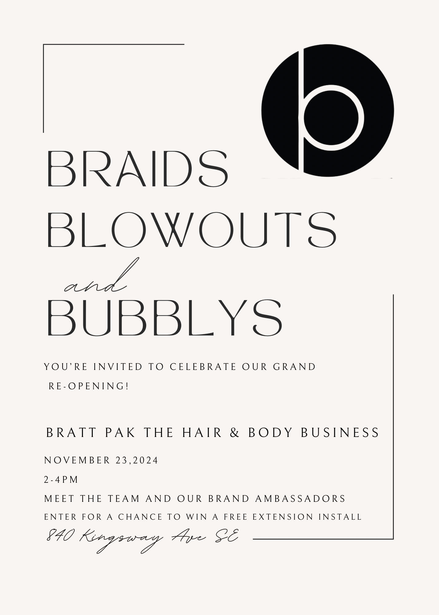 Braids, Blowouts and Bubblys - Bratt Pak Re-Opening